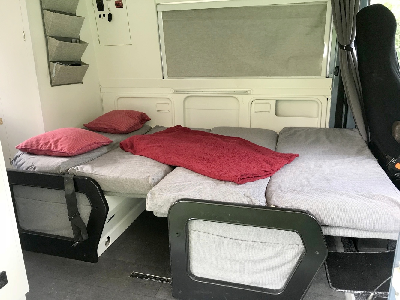 Ein entscheidender Vorteil ist die Wendigkeit und Kompaktheit. So finde ich sowohl in schönen Städten als auch am Camping-/Stellplatz rasch ein tolles Plätzchen. Meine kurze Fahrzeuglänge (knapp 5m) bietet ein überraschend tolles Raumgefühl mit 1 Bett oben 115x200cm (1 Kind, max. 100kg) und 1 Bett unten circa 120x190cm (für 2 Erwachsene, nach Umbau der Sitzgruppe). Der Stauraum ist überschaubar und befindet sich unter der vorderen Sitzbank, also maximal „Klamotten, zwei paar Schuhe rein - los geht's". Man braucht im Urlaub eh weniger als man immer meint. Ich bin optimal für 2 Personen geeignet.