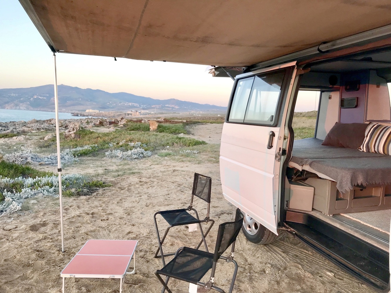 our experience with La Quinta (the van's name) has been great! We travelled around Algarve, we slept in fantastic places in front of the sea and had dinner under the stars in the middle of the nature. Onestly the best way to travel! The van is really good and simple to use in any of its "settings": easy to ride, since is quite little, easy to pass from the day organisation (table and banches) to the night set-up, easy to park,... And the van has all you'll need to pass really a good and confortable period on it! SUPER SUGGESTED!