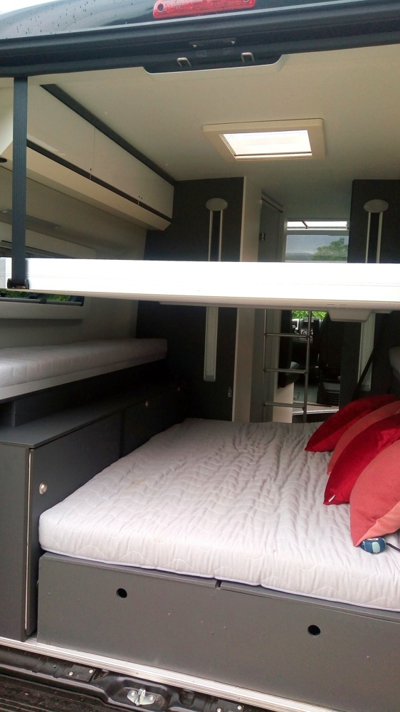 Si vous désirez partir avec les enfants il est possible de rajouter un coffre de rangement supplémentaires avec deux matelas à l'arrière (bien nous le signaler à la réservation).