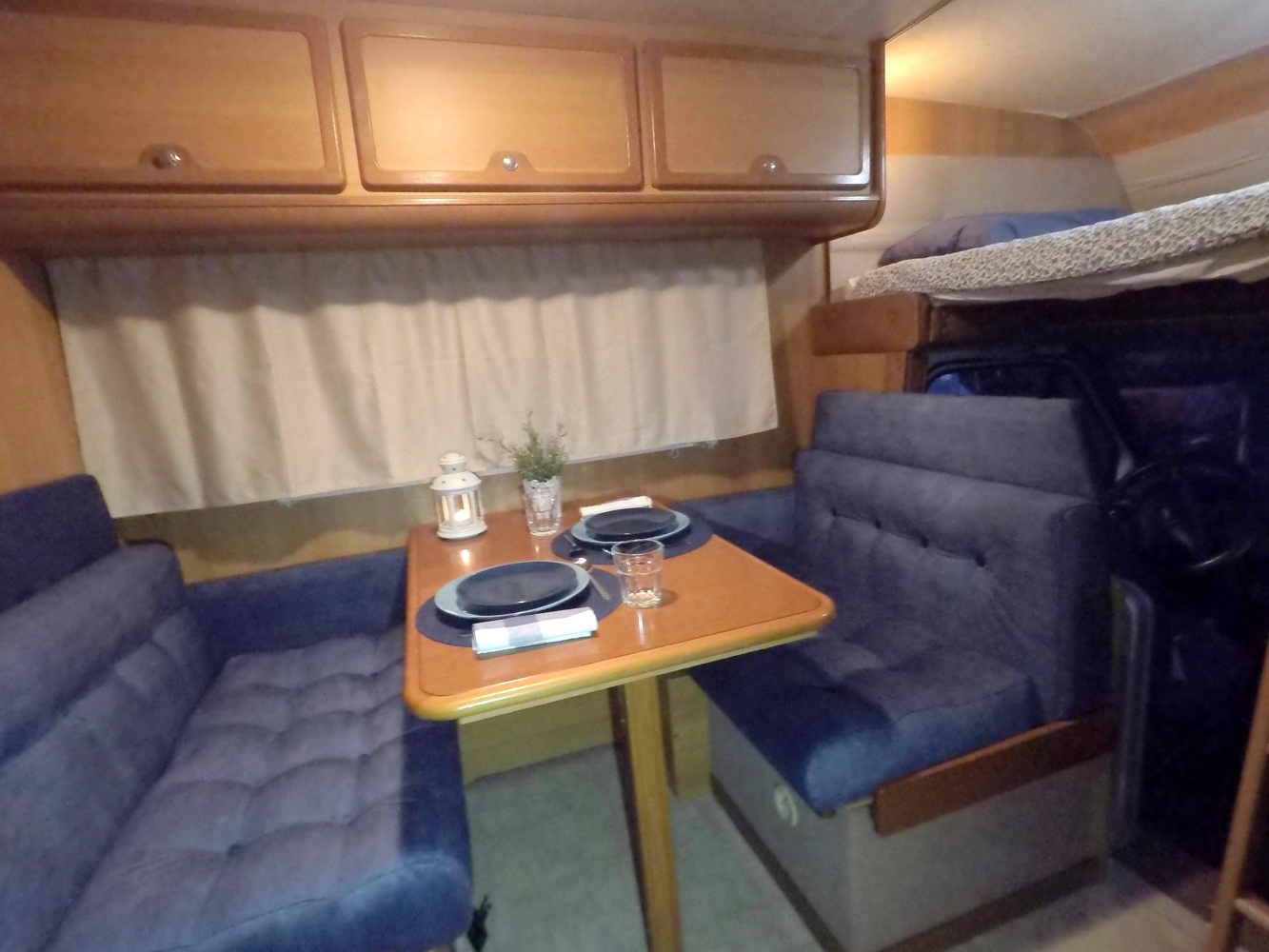 Totalmente equipada, e autónoma, com cozinha, sala, casa de banho e 2 camas de casal (uma sempre feita e outra que se “constrói” baixando a mesa de refeições). Duas garrafas de gás, painel solar, televisão, camera traseira com visão diurna e nocturna, roupa de cama, utensílios de cozinha (panelas, copos, pratos, talheres…), mesa e cadeiras para colocar ao ar livre. só faltam mesmo os seus pertences pessoais para umas férias magníficas.