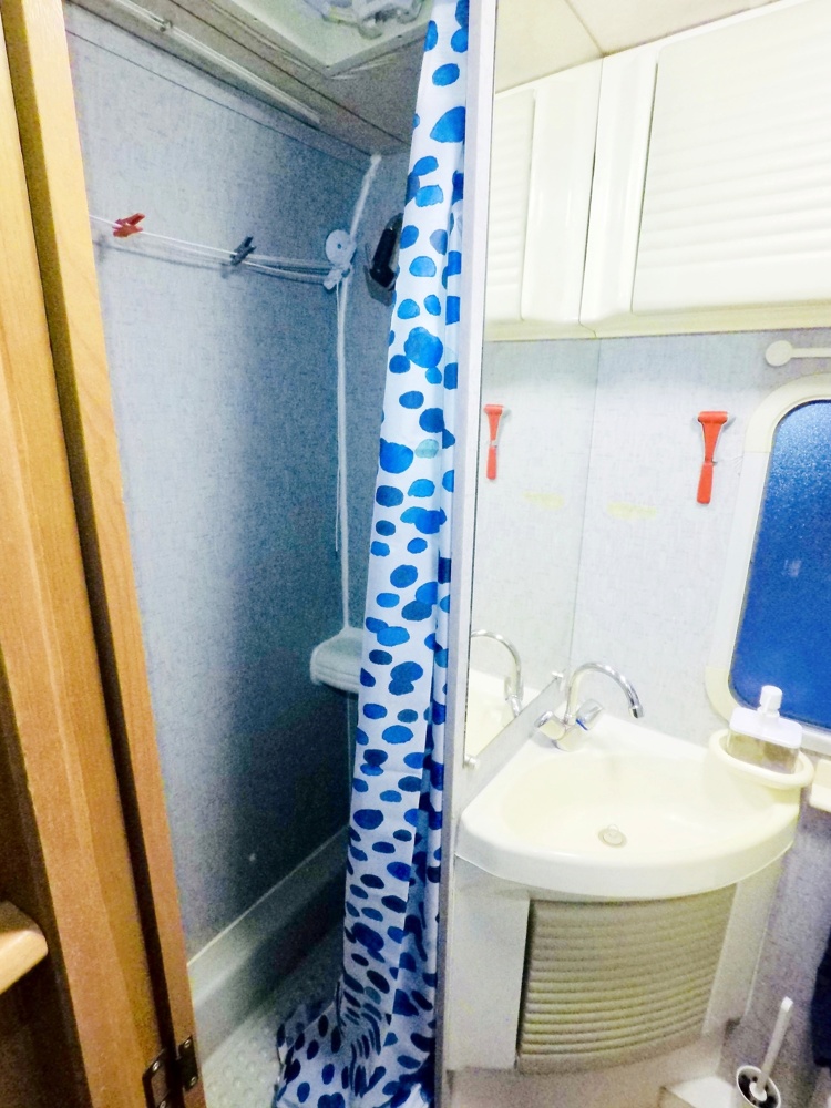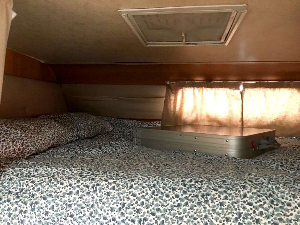 Situé à l'avant au dessus du poste de conduite et accessible via une échelle. Très confort, ce lit permet aussi de conserver de l'espace de vie.