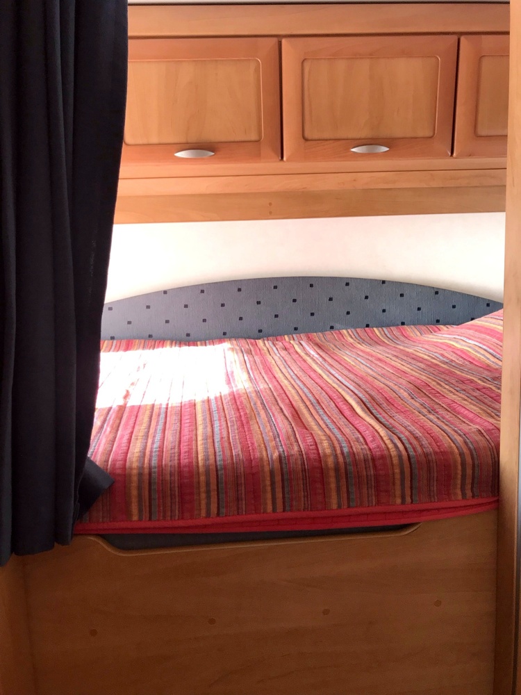 Situé à l’arrière sur l'un des côtés du véhicule. Prend moins de place qu'un lit central tout en gardant du confort.