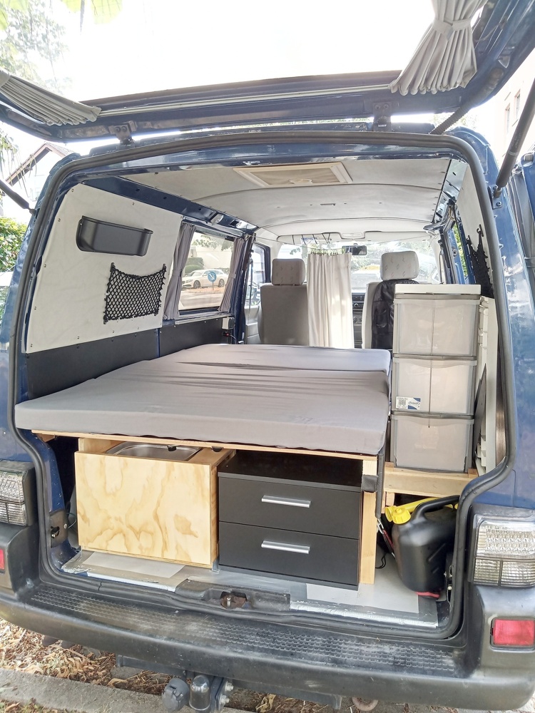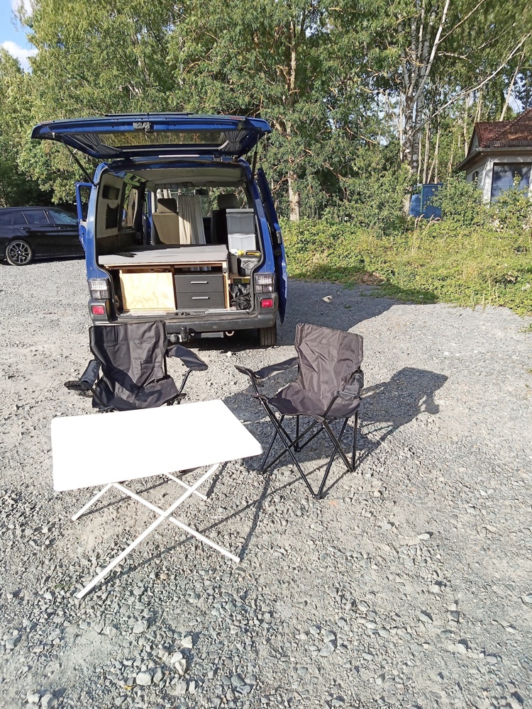 wir haben uns diesen Camper selber aufgebaut und haben uns bewusst für diese kurze Variante des VW T4 entschieden. Durch die kurze Länge und die Servolenkung ist es easy zu fahren und mit den Abmessungen kann man auch immer überall einen Parkplatz bekommen und eventuell auch mal in Parkhäuser fahren ;-)