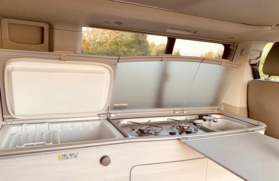 Mit seiner Vielfalt an Ausstattung lässt sich jede Reiseroute bequem bewerkstelligen. Er besitzt 5 Sitzplätze mit viel Stauraum, 4 Schlafmöglichkeiten, Indoor-Sitzgruppe für 4 Personen, Gaskocher inklusive allen wichtigen Küchenutensilien, Kühlbox, Waschbecken, Navi, Markise mit einem Tisch und 4 Sitzmöglichkeiten. Für eine Erfrischung steht die Außendusche bereit.